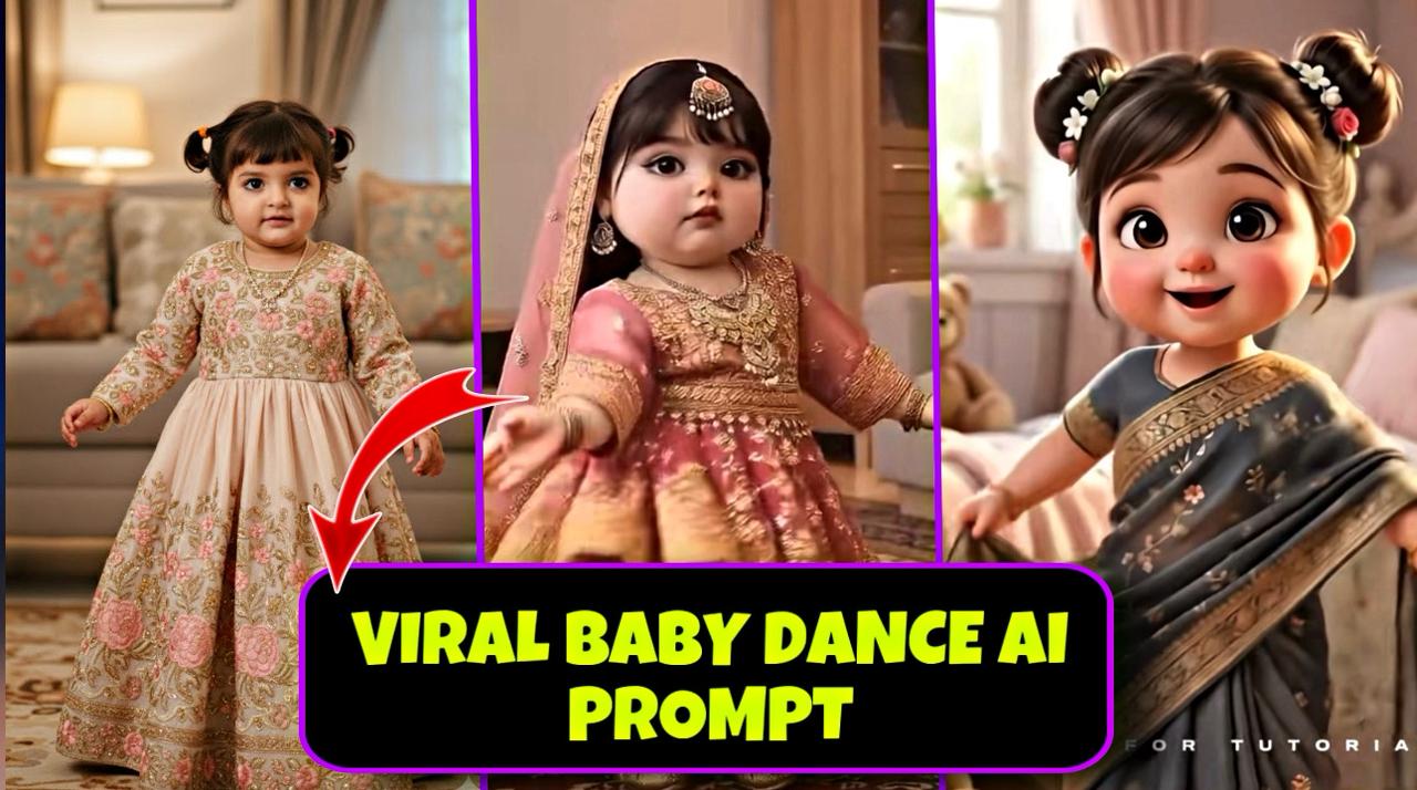“Create a short cinematic AI video using the uploaded image as reference.The baby should keep the same face identity, same facial features, and same expressions.The baby is wearing a beautiful traditional South Asian dress with soft embroidery and jewelry.The baby is doing a cute, innocent, viral-style dance with small hand movements, gentle foot steps, and happy expressions.Dance style should be soft, playful, and adorable (reel-style viral baby dance).Smooth body motion, natural baby movement, realistic proportions.Indoor cozy living room background with warm lights, soft shadows, and shallow depth of field.Ultra-realistic, cinematic lighting, 4K quality, smooth animation, joyful and heart-melting mood.Camera slightly moving (slow cinematic pan), stable face, no distortion.”